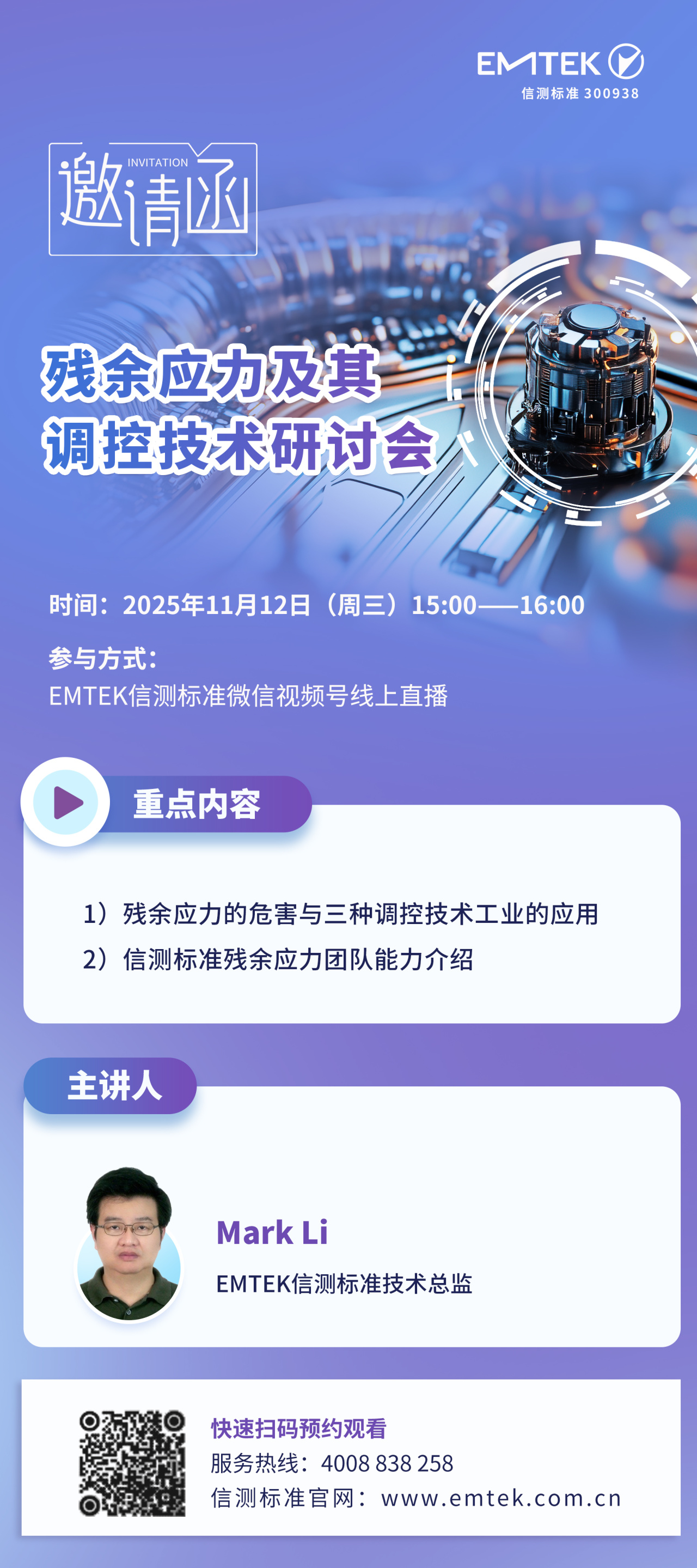 為共探應(yīng)力奧秘、共促產(chǎn)業(yè)升級,11月12日下午3點,信測標準特邀您參與“殘余應(yīng)力及其調(diào)控技術(shù)”專題線上研討會,將從殘余應(yīng)力的來源、利弊、測量、分析評價和調(diào)控等方面,與國內(nèi)廣大材料領(lǐng)域科技人員、檢驗者及設(shè)備廠商進行溝通與交流,共同促進我國殘余應(yīng)力技術(shù)的進步,助力中國智造邁向新高度!歡迎預(yù)約,提前鎖定精彩!